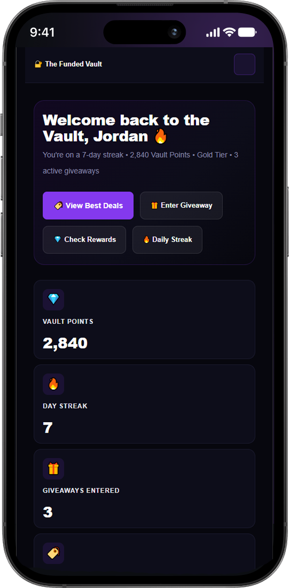 From exclusive discounts to free giveaways and trader mindset tools — everything inside The Funded Vault is built to help you get funded faster and trade smarter.